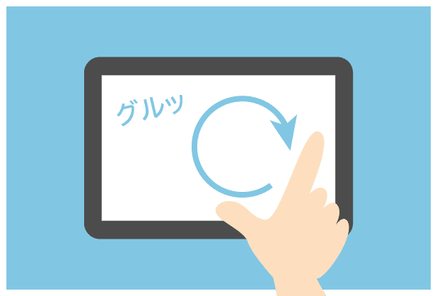 2本いじょうのゆびをがめんにおいて、かいてんさせます。