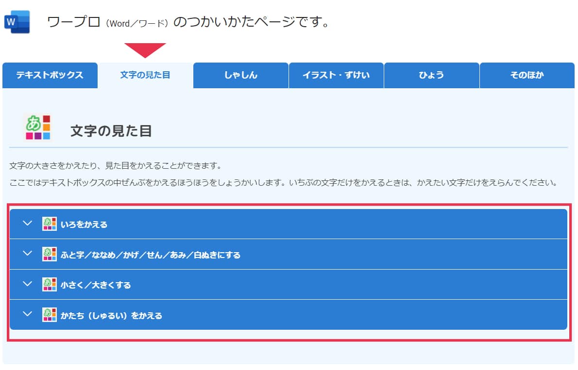 ここでは、テキストボックスのつかいかたをしょうかいします。